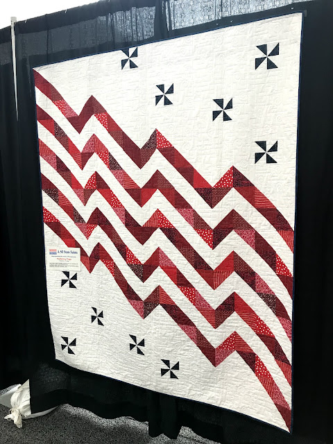 There's just something about the combination of Red White and Blue that makes me happy! What a great place to display such an important organization. I hope quilters and perhaps hopeful quilters saw these designs as doable. They're beautiful without being overwhelming. A reachable goal.