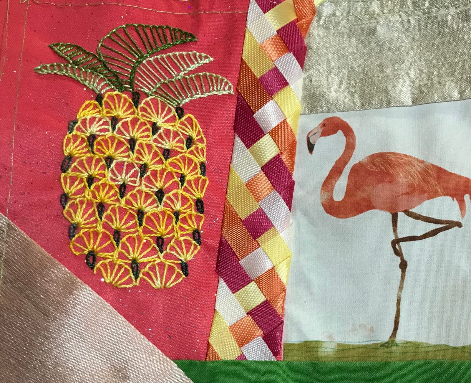 I did a Pinterest search for bird embroidery ideas and this pineapple came up. I loved it, saved it for a another time but then realized my flamingo could use a pineapple.